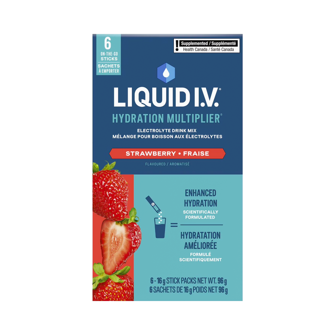 Liquid IV - Préparation pour boisson électrolytique multiplicatrice d'hydratation, fraise | 6 sachets