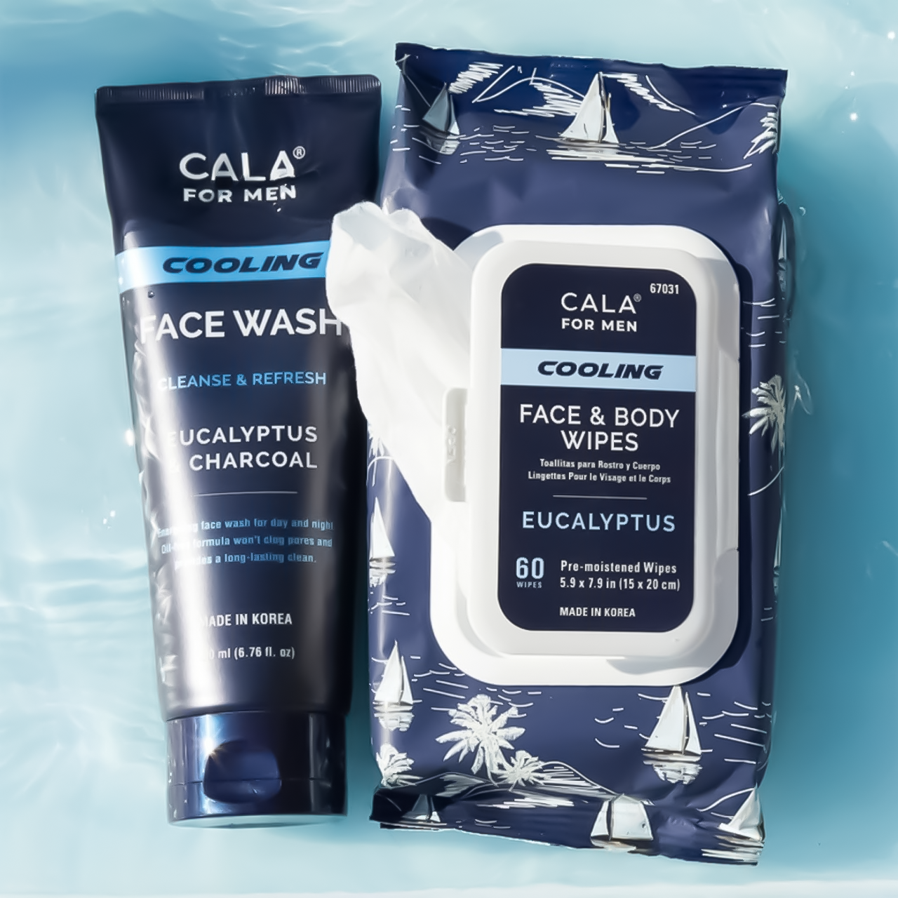 Cala For Men - Cooling Face & Body Wipes, Eucalyptus | 60 Wipes