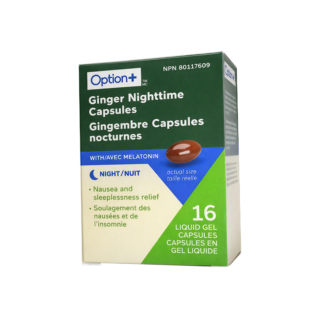 Option+ Gélules de nuit au gingembre avec mélatonine | 16 gélules de gel liquide