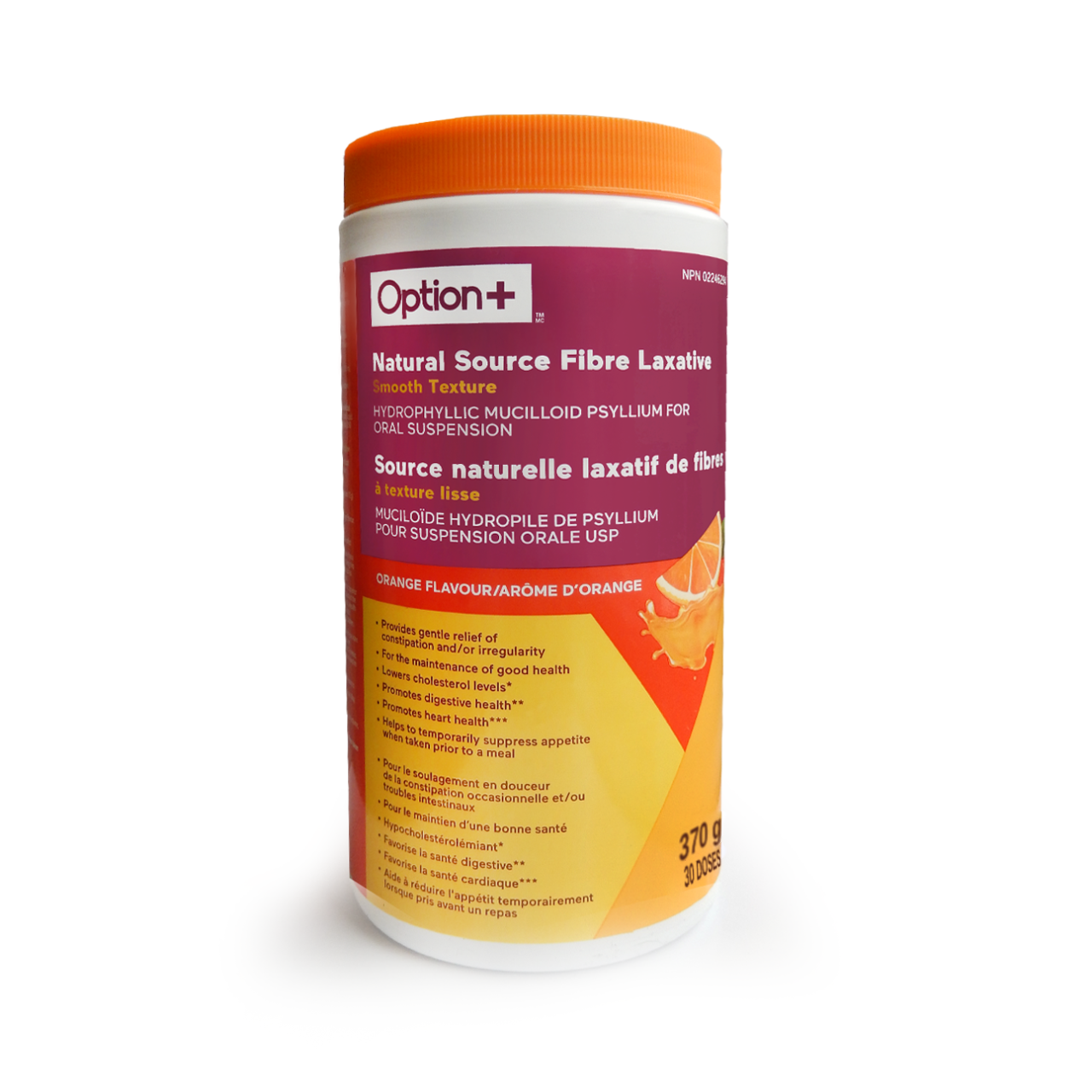 Option+ Laxatif à base de fibres naturelles Texture lisse, saveur d'orange | 360 g