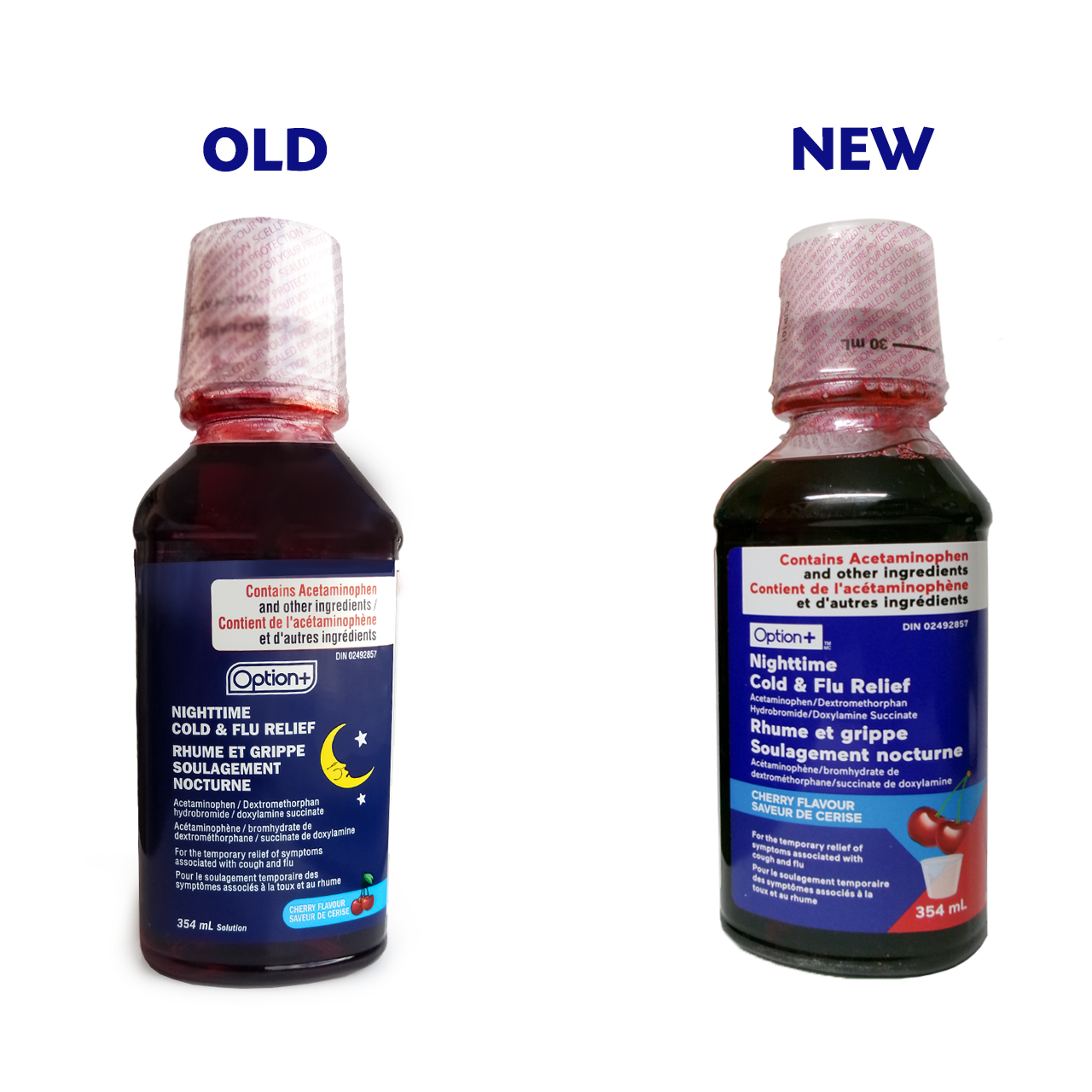 Option+ - Sirop contre le rhume et la grippe pour la nuit - Saveur cerise | 354 ml