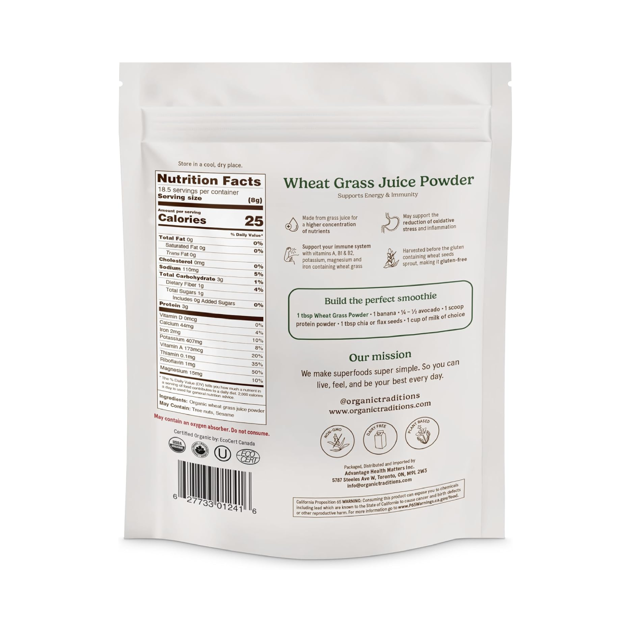 Organic Traditions - Poudre de jus d'herbe de blé | 150 g