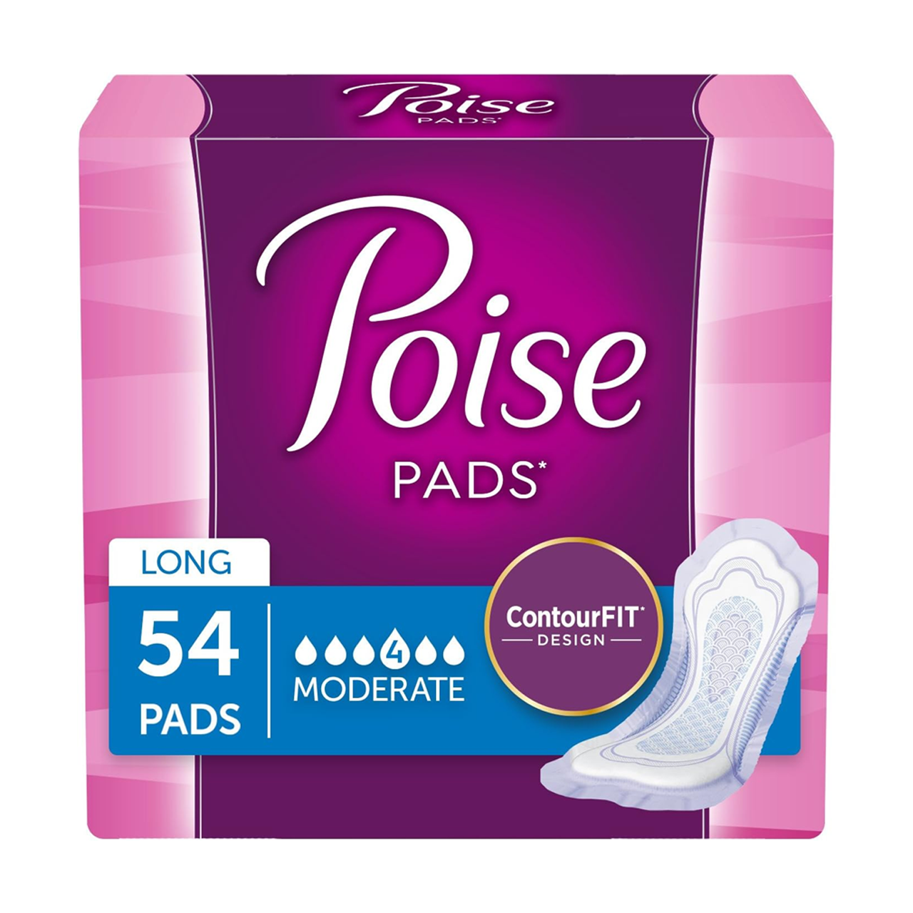 Poise - Serviettes pour incontinence - Absorption modérée - Longue longueur | 54 tampons