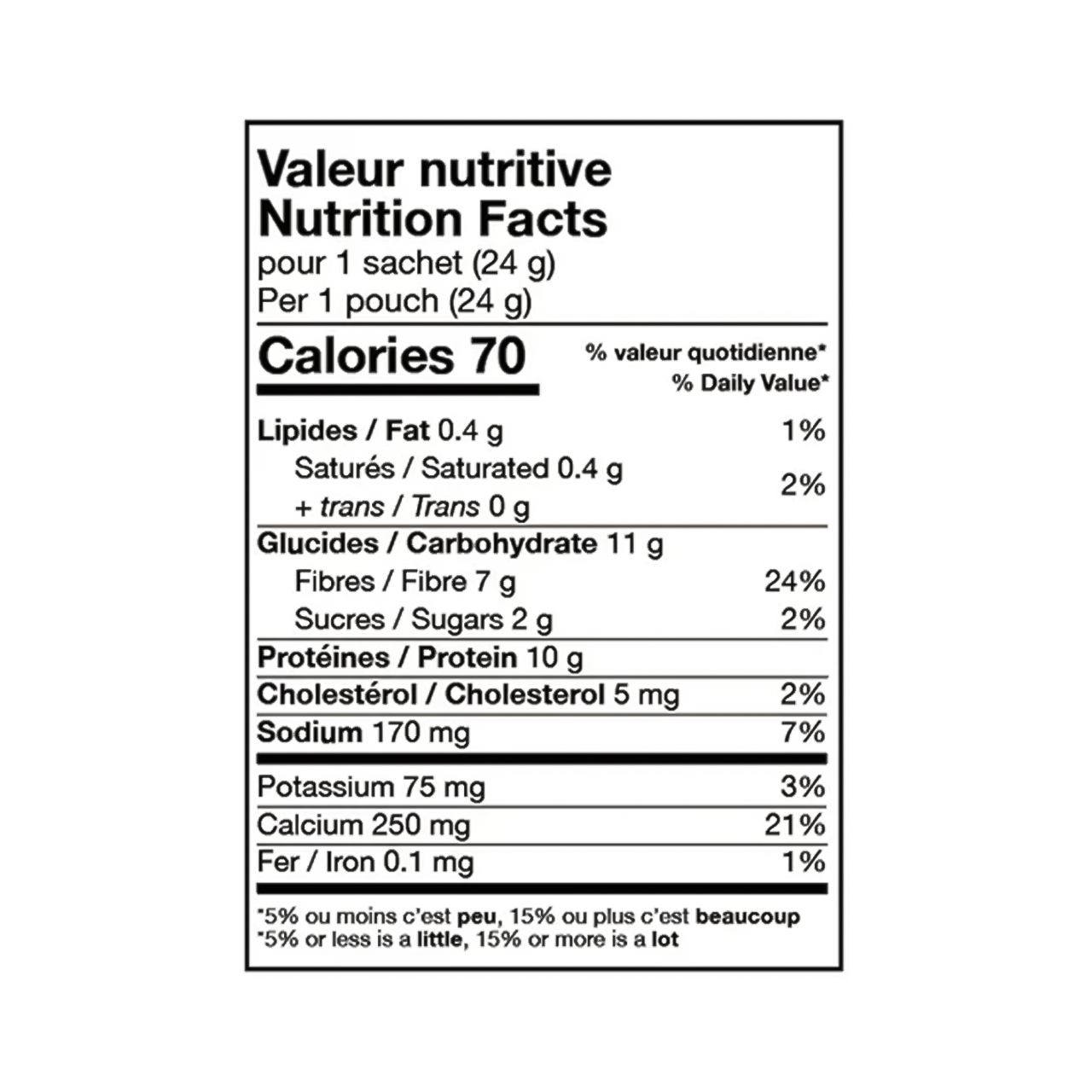 Protein 10 g, Sodium 170 mg, Potassium 75 mg, Calcium 250 mg, Iron 0.1 mg.