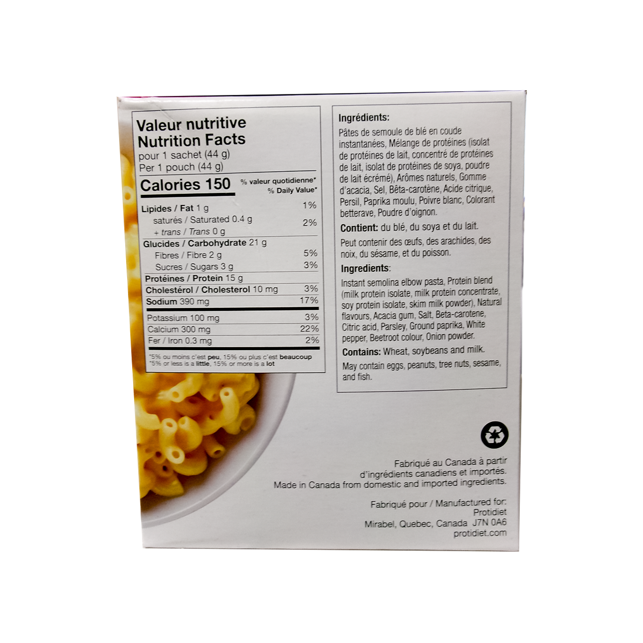 Soldes -$0.71 ProtiDiet - Natural Flavour Mac and Cheese | 7 x 44 g VendeurProtiDiet Partagez ce produit WhatsApp Facebook X Pinterest Messenger Email Fiche produit Ramassage gratuit dans notre magasin Ramassage gratuit dans notre magasin SKU: 62149800934 9 en stock $14.29 $13.58 Quantité Ajouter au Panier Cet article constitue un achat récurrent ou différé. En continuant, j’accepte la politique de résiliation et vous autorise à facturer mon moyen de paiement aux prix, fréquences et dates listées sur cette page jusqu’à ce que ma commande soit traitée ou que je l’annule, si autorisé. Caractéristiques High-protein mac and cheese meal.Natural flavor with creamy texture.Easy prep single-serve portions.Supports structured weight programs.