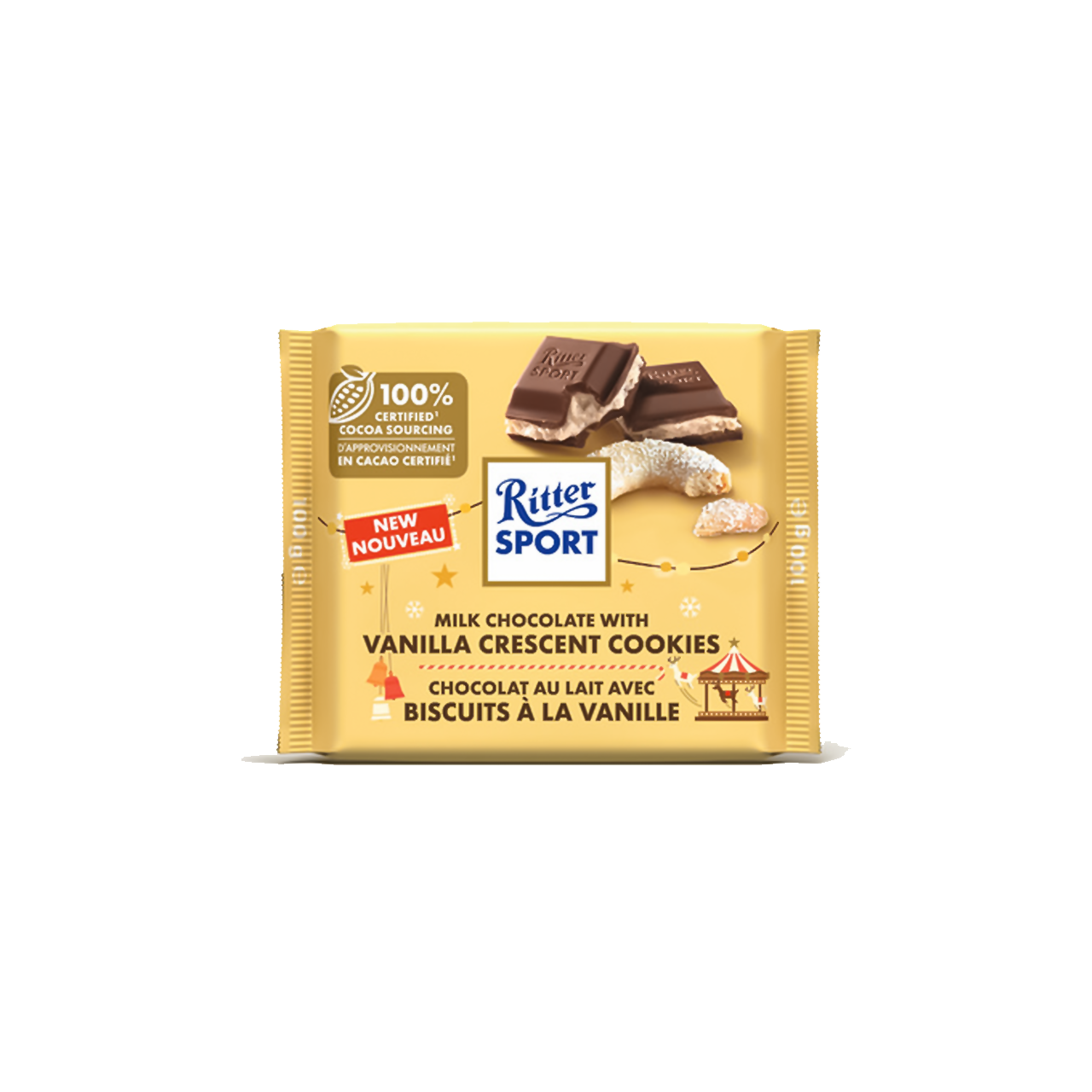 Ritter Sport - Milk Chocolate With Vanilla Crescent Cookies | 100 g