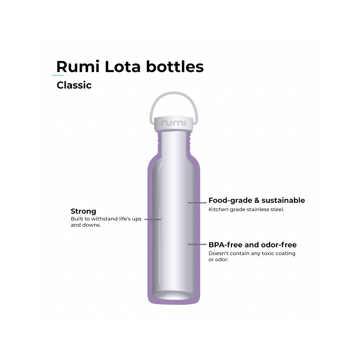Rumi Earth - Bouteille Lota 600 ml avec couvercle classique en acier inoxydable | Pierre