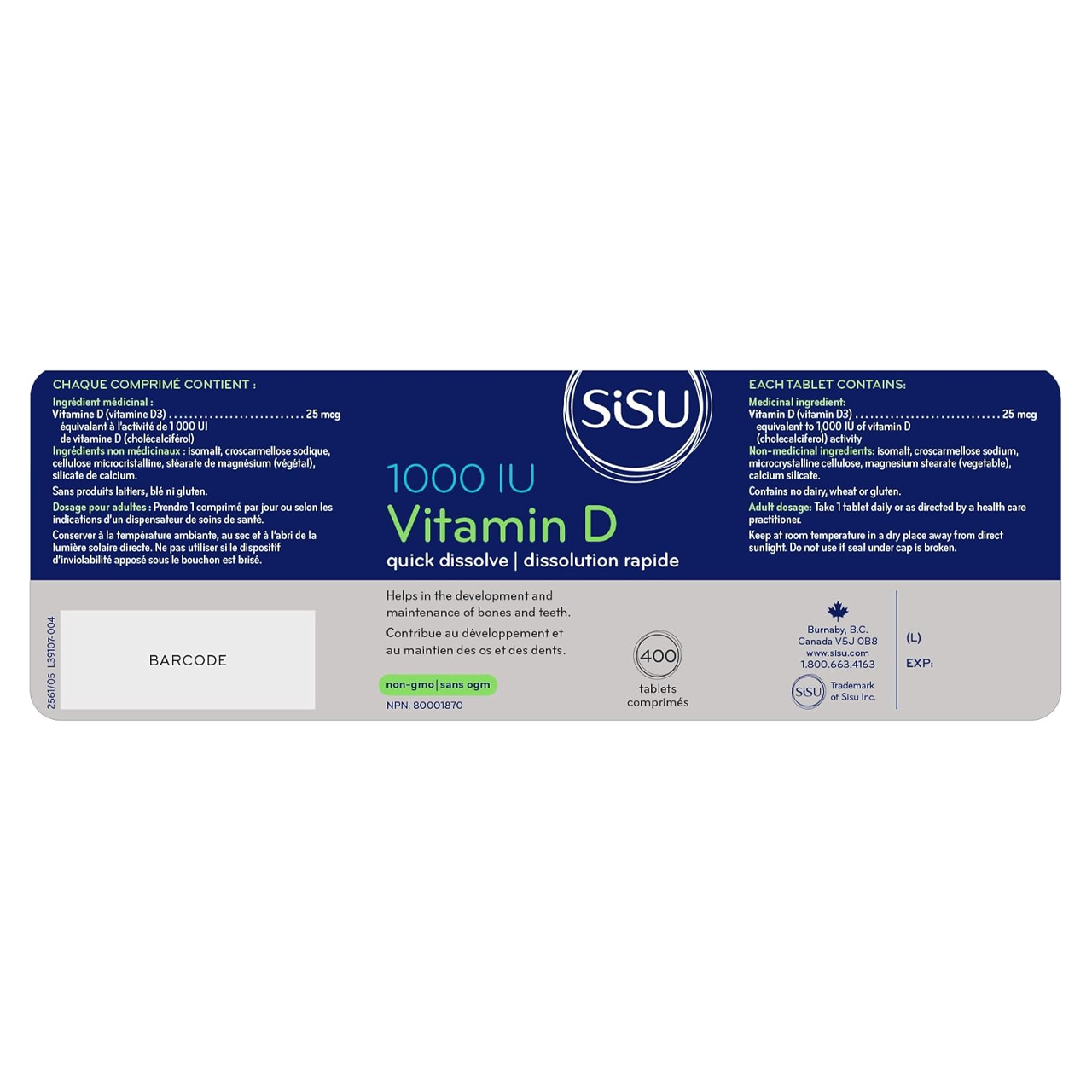 Sisu - Vitamine D 1000UI | 400 comprimés