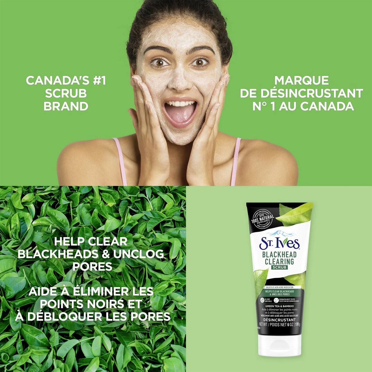 St. Ives - Gommage anti-points noirs pour l'acné, parfum thé vert et bambou | 170 g