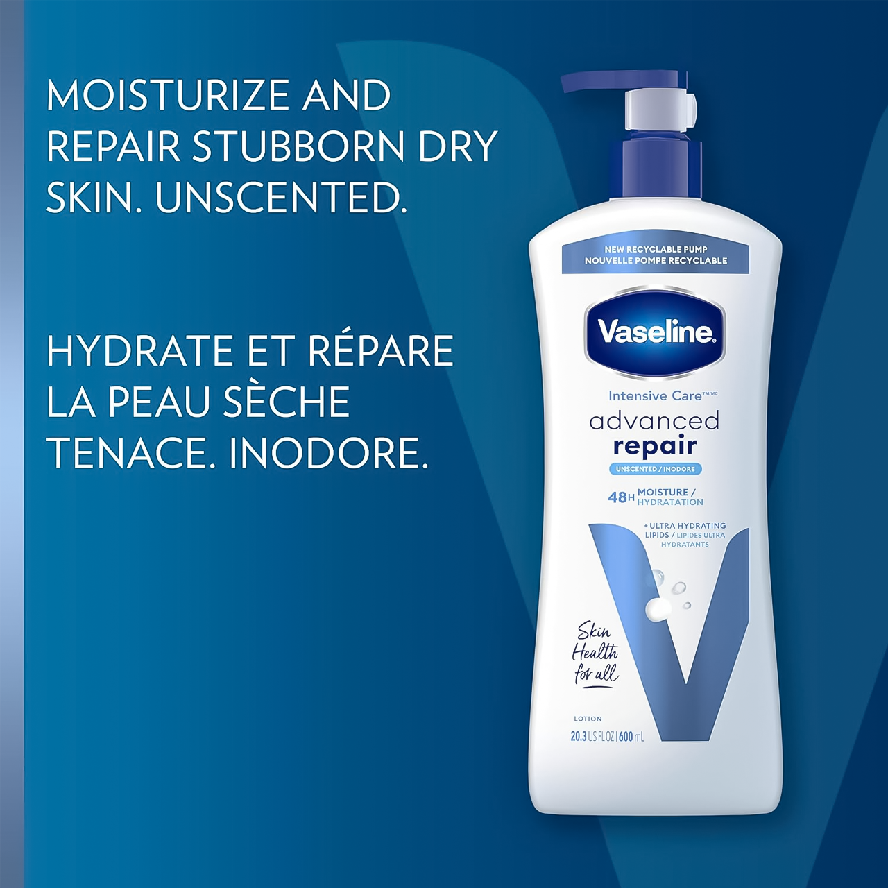 Vaseline - Lotion corporelle Soin intensif Réparation avancée Sans parfum | 600 ml