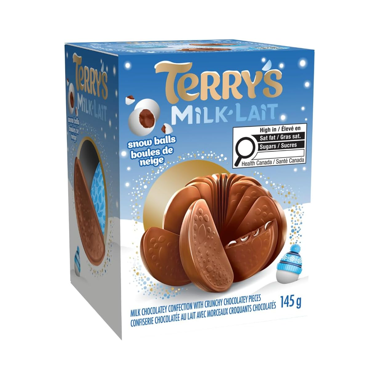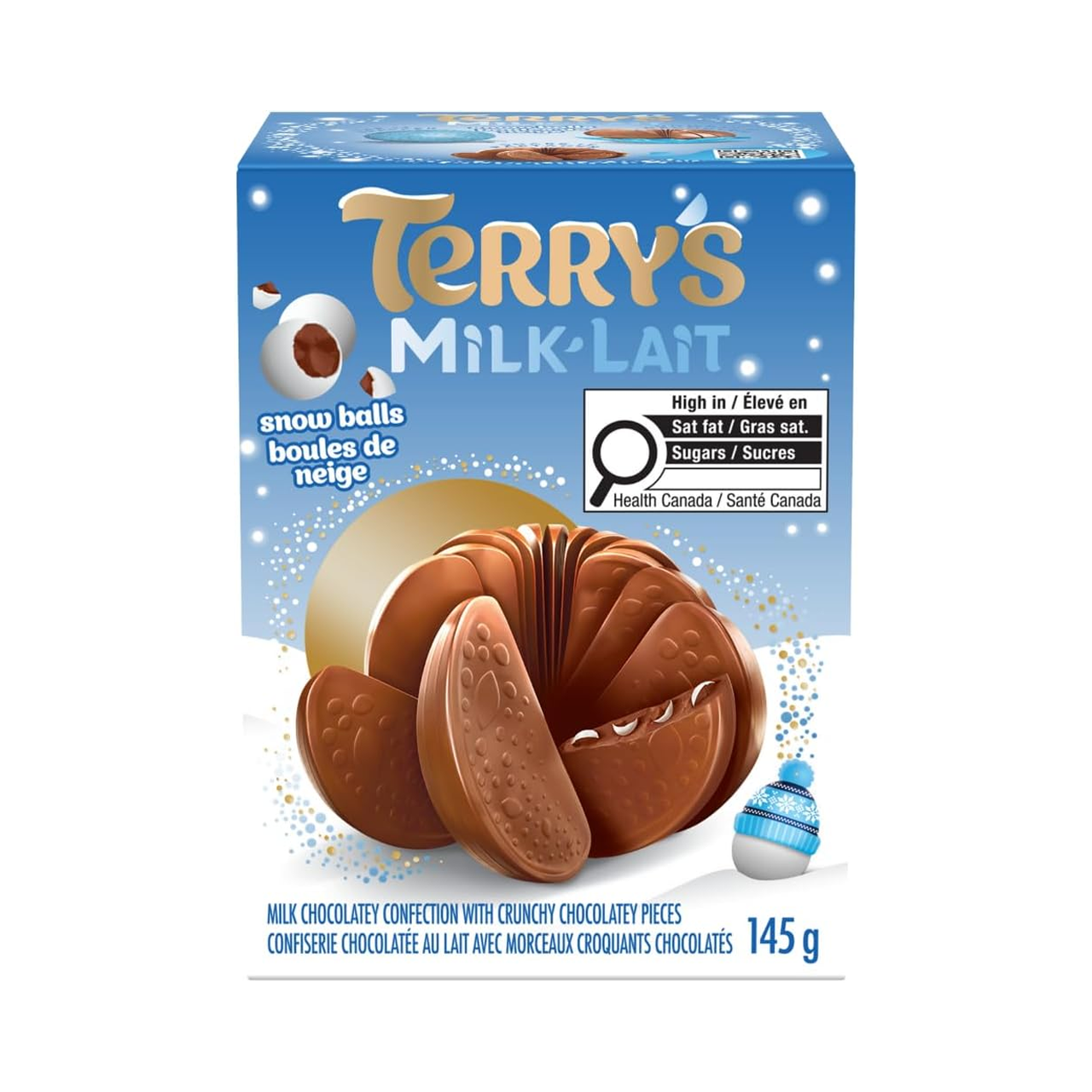 Terry's - Milk Chocolate Snow Balls | 145 g VendeurTerry's Orange Partagez ce produit WhatsApp Facebook X Pinterest Messenger Email Fiche produit Ramassage gratuit dans notre magasin Ramassage gratuit dans notre magasin SKU: 85006019241 12 en stock $7.69 Quantité Ajouter au Panier Cet article constitue un achat récurrent ou différé. En continuant, j’accepte la politique de résiliation et vous autorise à facturer mon moyen de paiement aux prix, fréquences et dates listées sur cette page jusqu’à ce que ma commande soit traitée ou que je l’annule, si autorisé. Caractéristiques Festive orange-shaped chocolate holiday treat.Creamy milk chocolate with orange flavor.Divided into 20 easy slices.Fun to tap, unwrap, and share.