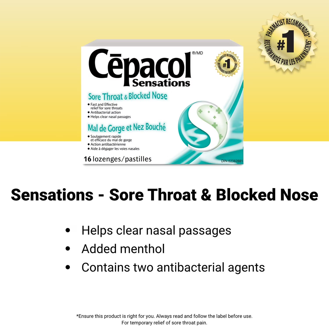 Cepacol - Sensations Lozenges - Sore Throat & Blocked Nose | 16 Lozenges