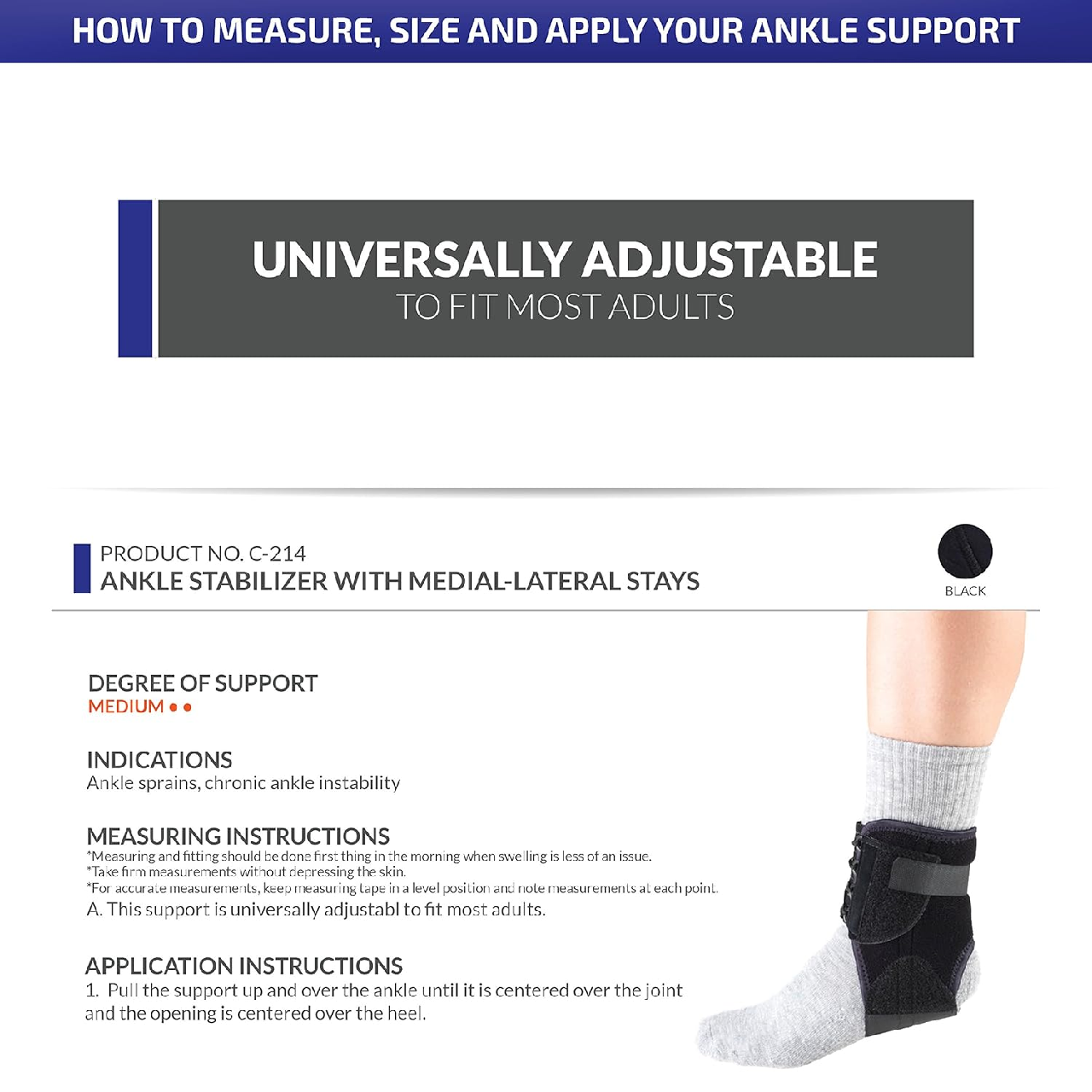 The Champion C-214 Ankle Brace has been constructed to provide more support than an ordinary elastic anklet, but does not restrict motion altogether as some harness type supports. The design of the brace allows the flexible support stays to work together with the sturdy fabric to provide maximum support while permitting normal activity. Universally adjustable to fit most adult ankles.