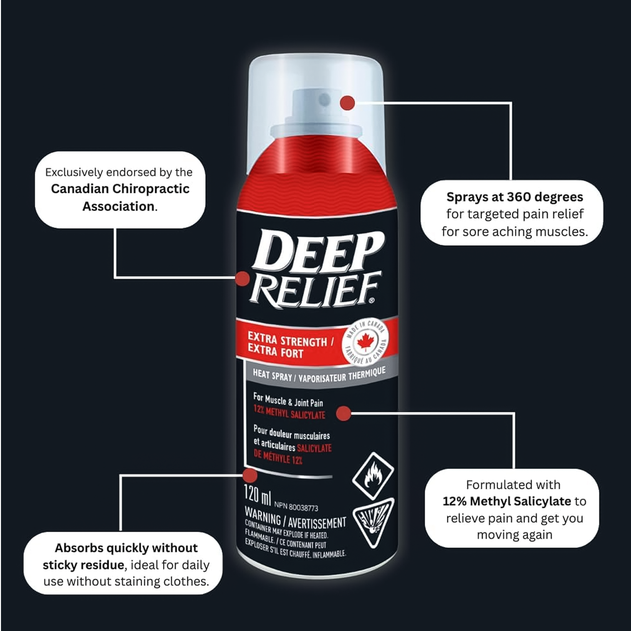 Deep Relief - Extra Strength Heat Spray for Muscle & Joint Pain | 120 mL