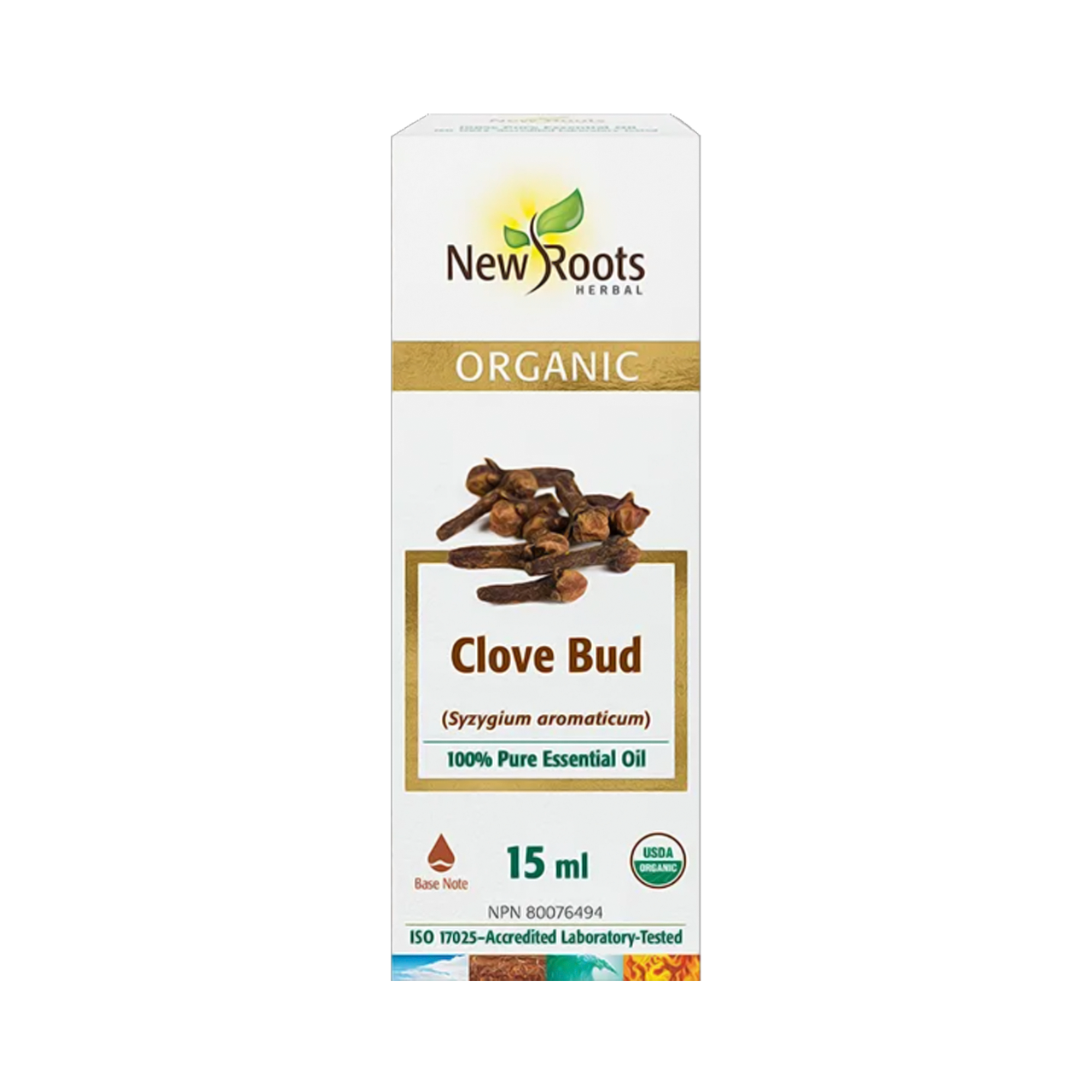 Used in aromatherapy topically to help relieve toothache. Used in aromatherapy to help relieve colds/cough. Syzygium aromaticum is the Latin name for a tree whose buds, called cloves, are one of the most valuable spices. They have been used for centuries as a food preservative and for their many medicinal purposes. Cloves stand out above oregano, mint, thyme, and cinnamon for their high antioxidant and antimicrobial activities. New Roots Herbal’s 100% pure essential oils are steam-distilled to extract these valuable medicinal ingredients.