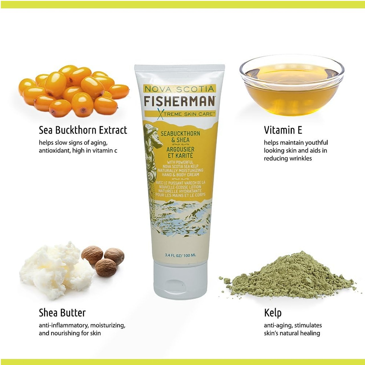 Smooth sailing for your skin. This ultra-nourishing, all-natural lotion is our richest formula yet. Powered by seabuckthorn, a vitamin- and omega-packed berry known for supporting healthy, resilient skin. Blended with Nova Scotia sea kelp, shea butter, aloe, and other botanicals, it absorbs quickly, leaving skin soft, smooth, and non-greasy. The bright, fresh citrus scent, with hints of sweet orange, lemongrass, and ginger, uplifts with every use. Ideal for sensitive skin and everyday hydration.