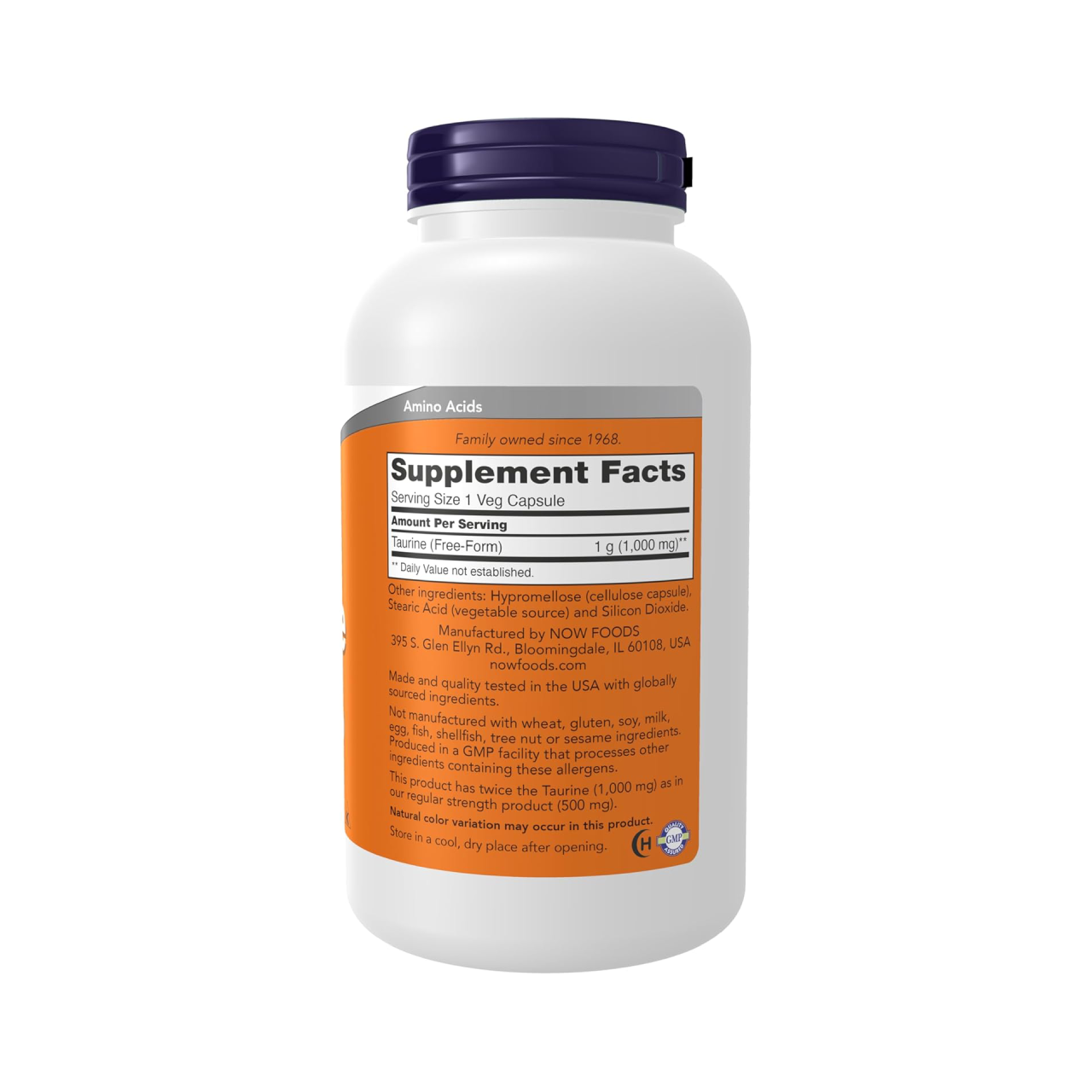 NOW Taurine 1000mg Capsules provide a double strength formula, offering 1000 mg taurine per capsule. Taurine is essential for supporting nervous system health and maintaining visual function. It helps regulate nerve impulses and supports fluid balance within the body. Taurine also plays a key role in the brain and nervous system, working alongside glycine and GABA as neurotransmitters. This formula is vegan, non-GMO, and free from common allergens like gluten, soy, and dairy, making it ideal for a variety of dietary preferences. Each capsule is produced under GMP certified standards, ensuring quality and potency.