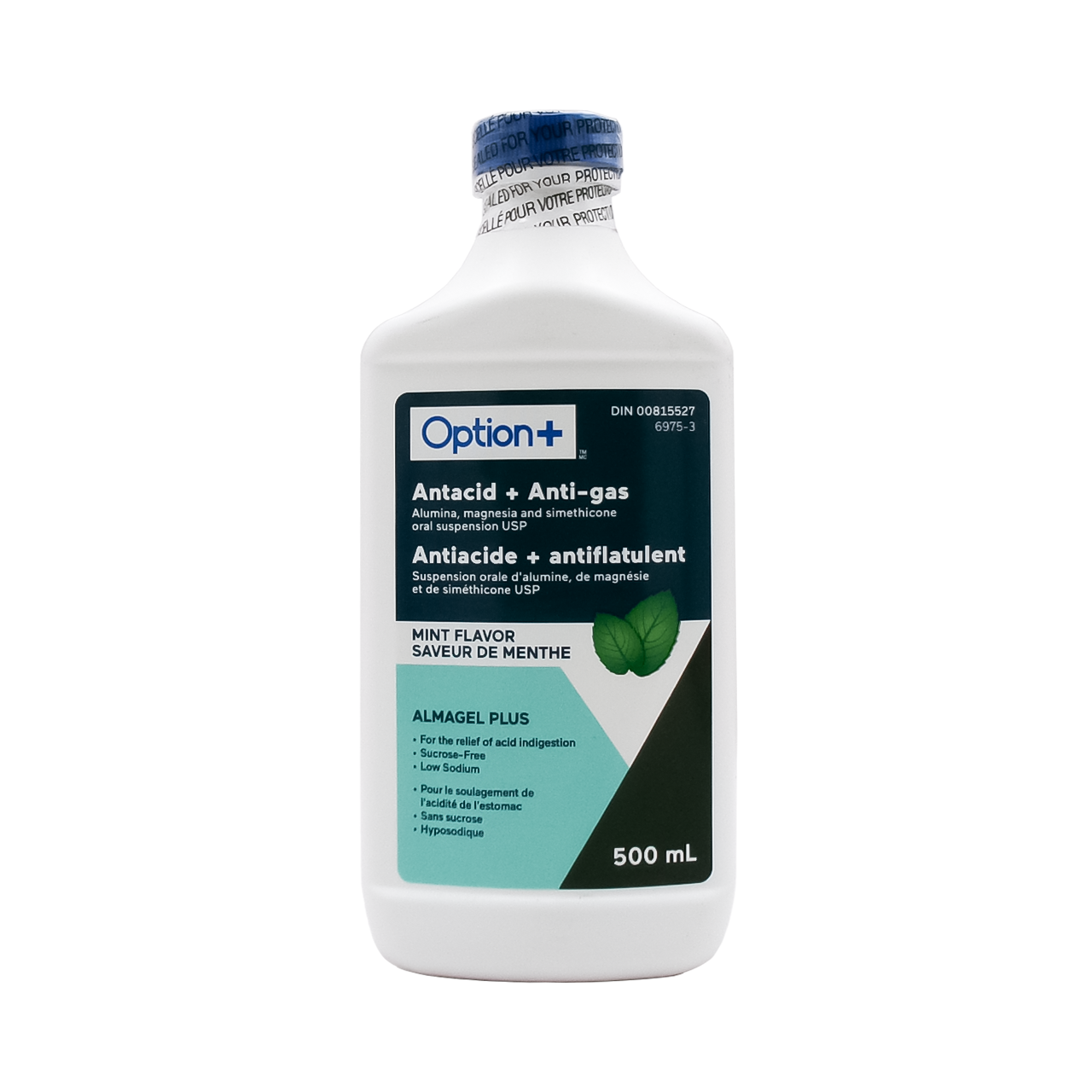 Option+ Antacid Plus Anti-Gas Liquid, Mint Flavour | 500 mL