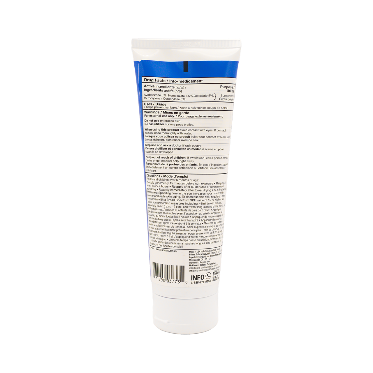 Avobenzone 3%, Homosalate 7.5%, Octisalate 5%, Octocrylene 5%