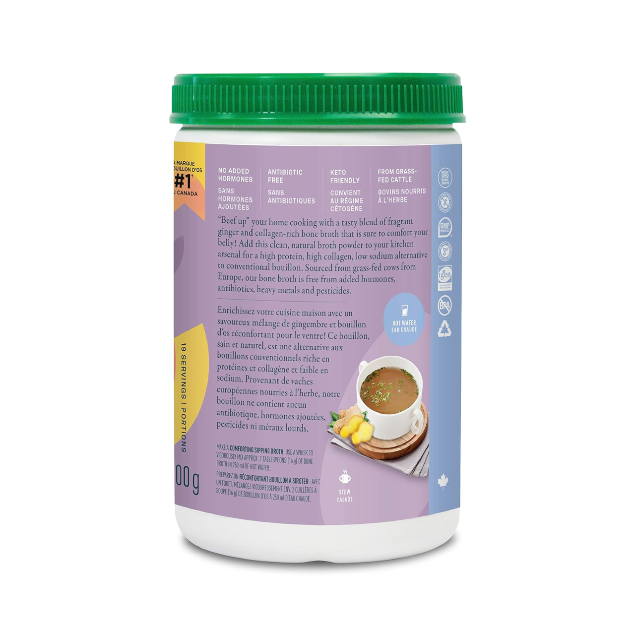This beef bone broth powder with ginger offers a nutrient-dense, ready-to-mix alternative to traditional broth. Each serving contains 14 grams of protein to support muscle strength and daily nourishment, along with collagen and gelatin for joint, gut, and skin health. The addition of ginger enhances digestive comfort and adds a warming, functional touch.