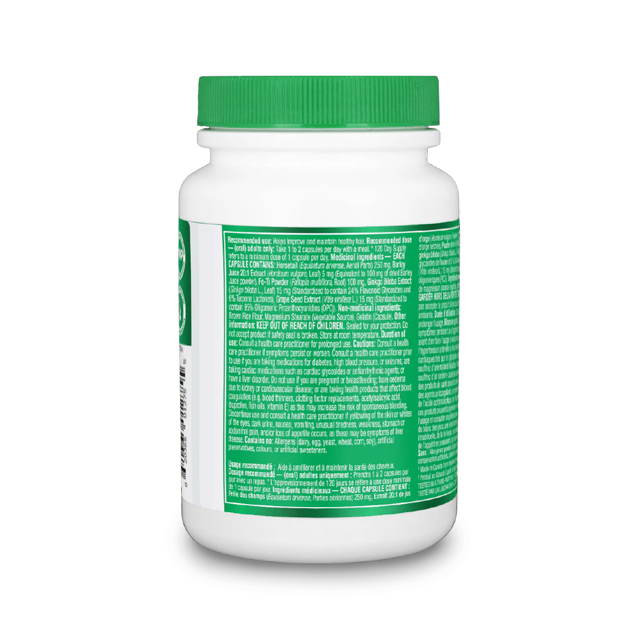 Horsetail 350 mg, Barley Juice 20:1 Extract 5 mg, Fo-TI Powder 100 mg, Ginkgo Biloba Extract 15 mg, Grape Seed Extract 15 mg.
