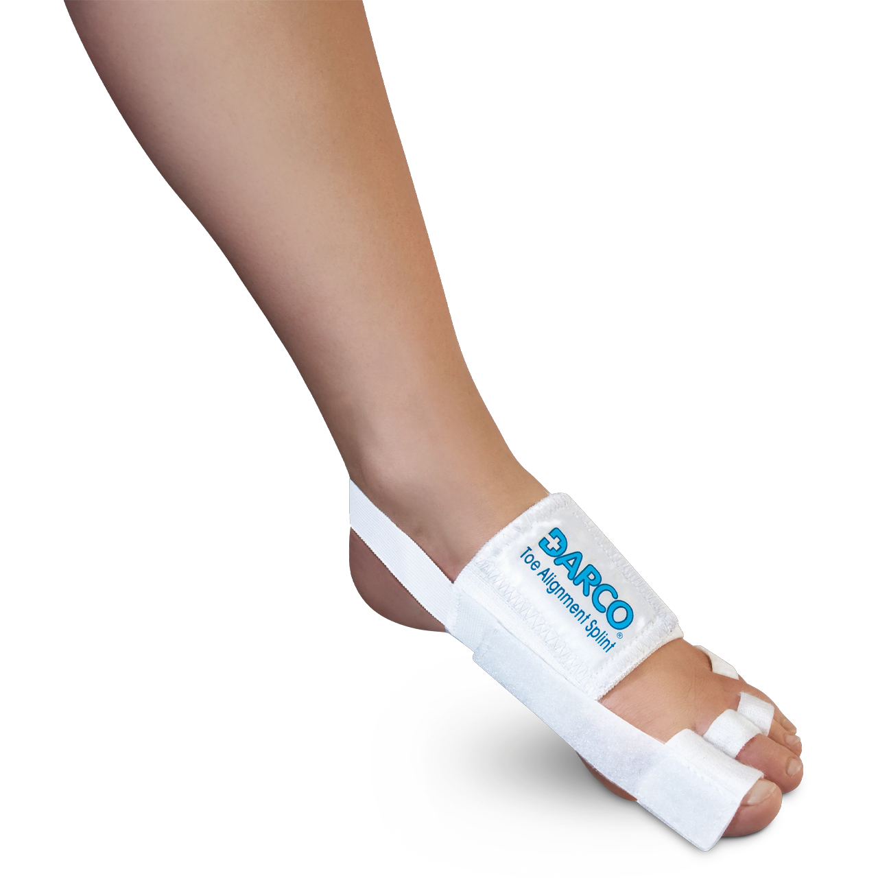 Constructed of soft cotton backed elastic material that will fit into standard footwear. Designed to maintain position of soft tissues until they heal following surgery for bunions or hammer toes. Reduces incidence of recurrence of the deformity following surgical corrections.