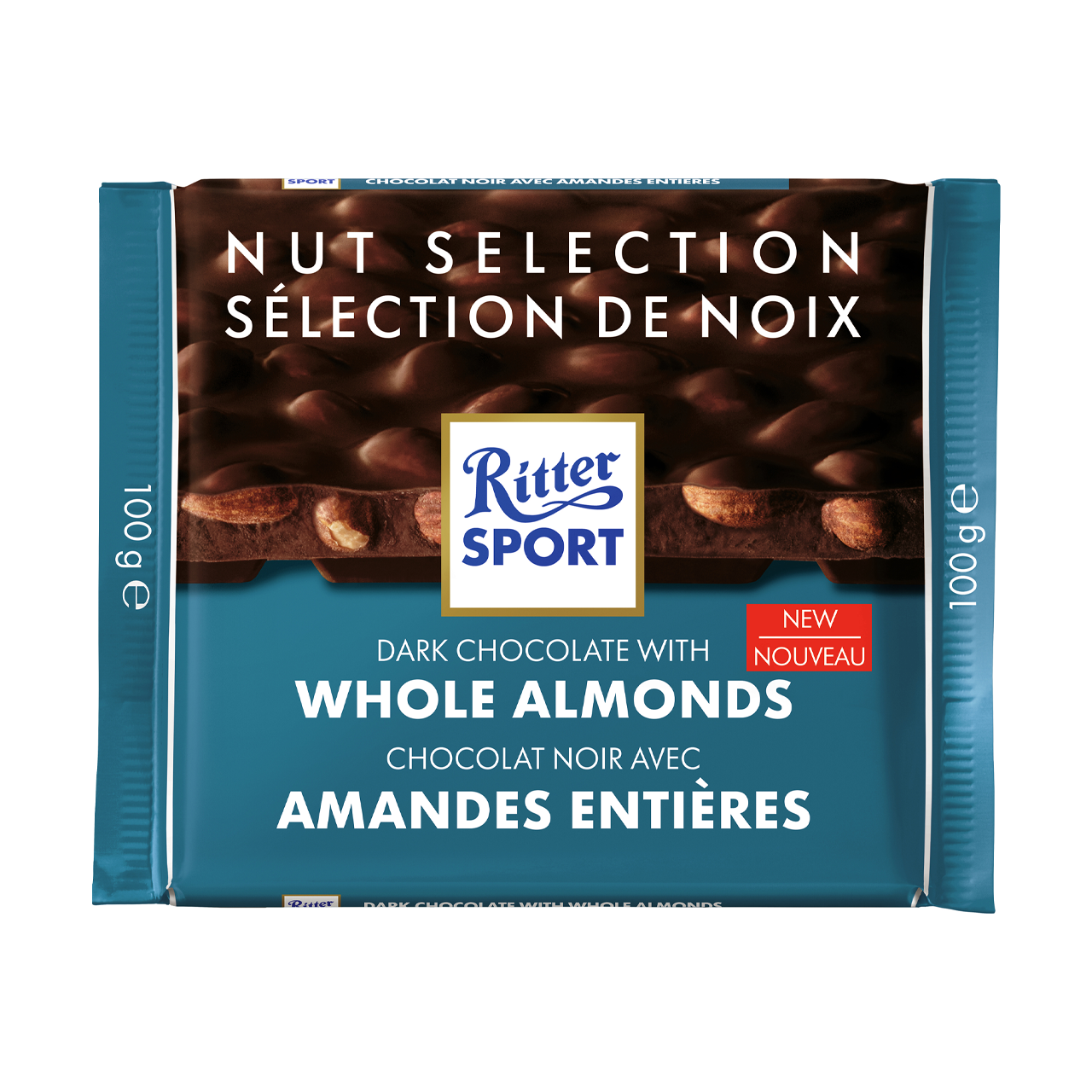 Ritter Sport - Dark Chocolate with Whole Almonds | 100 g Share WhatsApp Deel X Pin it Messenger Email Product form Free pickup in store Free pickup in store SKU: 05025570800 24 in stock $4.59 Quantity Add to cart This item is a recurring or deferred purchase. By continuing, I agree to the cancellation policy and authorize you to charge my payment method at the prices, frequency and dates listed on this page until my order is fulfilled or I cancel, if permitted. Features Whole roasted Californian almonds inside.Rich dark chocolate, perfectly balanced.Simple recipe with pure ingredients.Crunchy, satisfying bite every time.