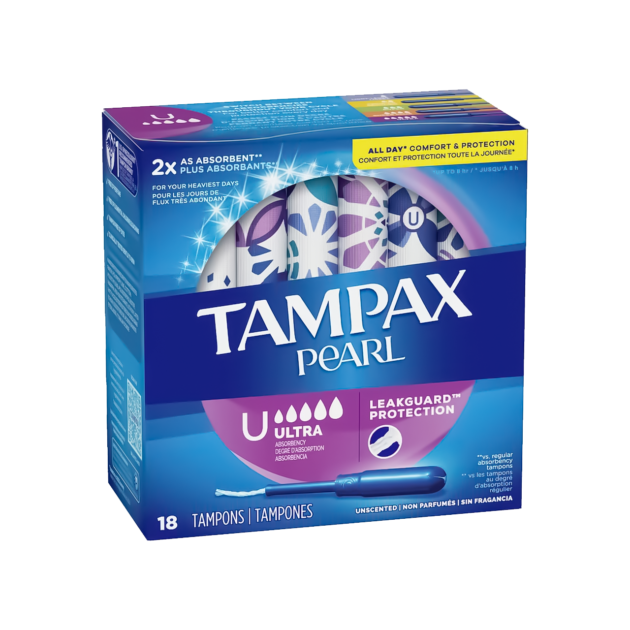 Tampax Pearl - Leakguard Protection - Ultra Absorbency - Unscented | 18 Tampons BrandTampax Share WhatsApp Deel X Pin it Messenger Email Product form Free pickup in store Free pickup in store SKU: 07301000986 3 in stock $7.29 Quantity Add to cart This item is a recurring or deferred purchase. By continuing, I agree to the cancellation policy and authorize you to charge my payment method at the prices, frequency and dates listed on this page until my order is fulfilled or I cancel, if permitted. Earn [points_amount] when you buy this item. Features Ultra absorbency for heavy flow.LeakGuard Braid helps prevent leaks.Smooth applicator for easy use.Unscented for sensitive comfort.
